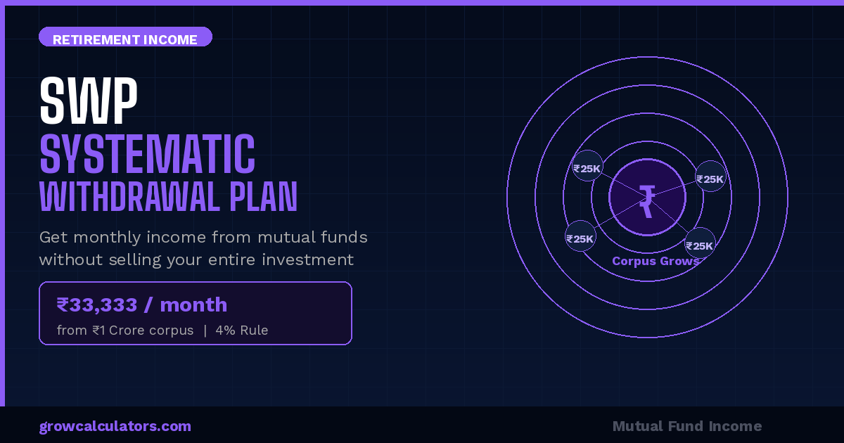 Ready to calculate your SWP? Use our SWP Calculator to find out exactly how much monthly income your corpus can generate. Also explore our Lumpsum Calculator and SIP Calculator to plan your wealth-building journey.
